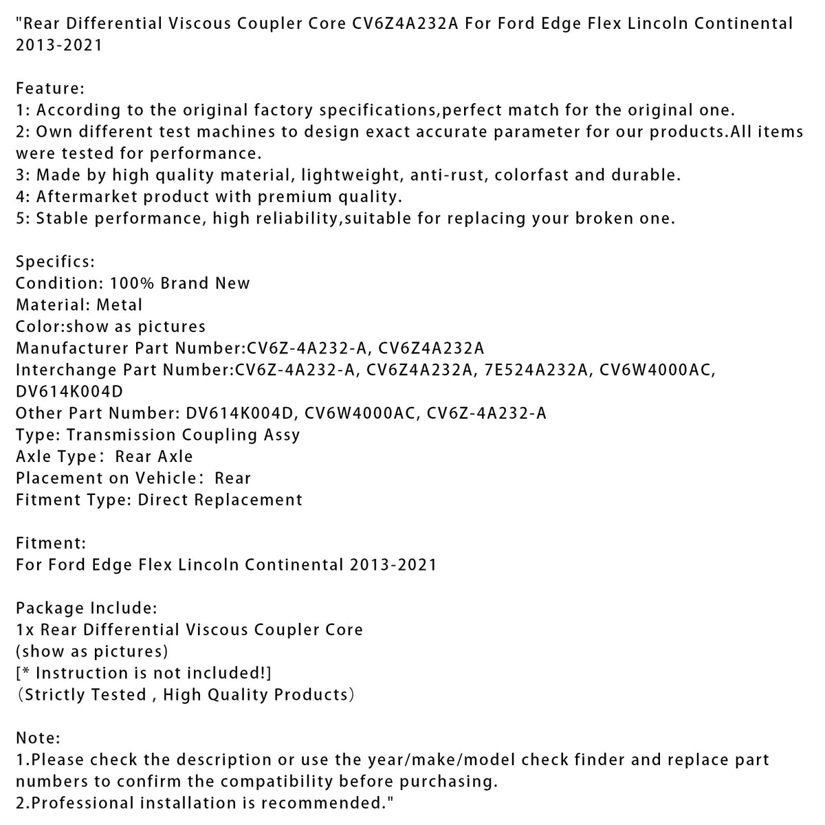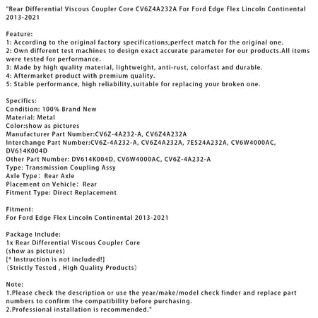 Hinterer Differential Viskosekoppler Core CV6Z4A232A Für Ford Edge Flex Lincoln Continental 2013-2021