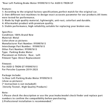 Hinten Links Feststellbremse Motor 9Y0907615 Für AUDI E-TRON GT