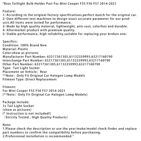 Hinten Rücklicht Birne Halter Teil Für Mini Cooper F55 F56 F57 2014-2021