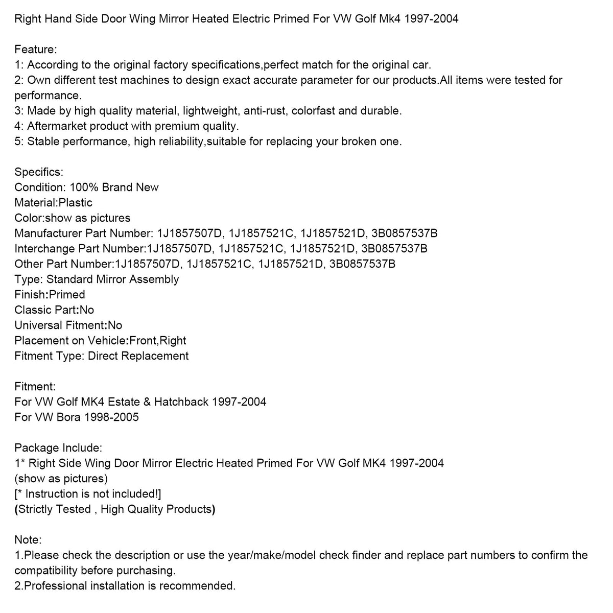 1. Bitte überprüfen Sie vor dem Kauf die Beschreibung oder verwenden Sie den Prüffinder für Jahr/Marke/Modell und ersetzen Sie die Teilenummern, um die Kompatibilität zu bestätigen.