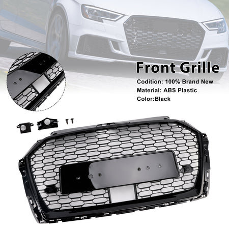 RS3 Style Honeycomb Kühlergrill passend für Audi A3 S3 2017–2019 W/ACC Schwarz, ohne Emblem