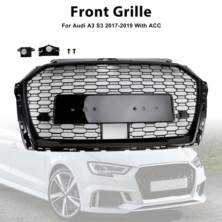 2017–2019 Audi A3 S3 W/ACC RS3 Style Waben-Kühlergrill, Schwarz