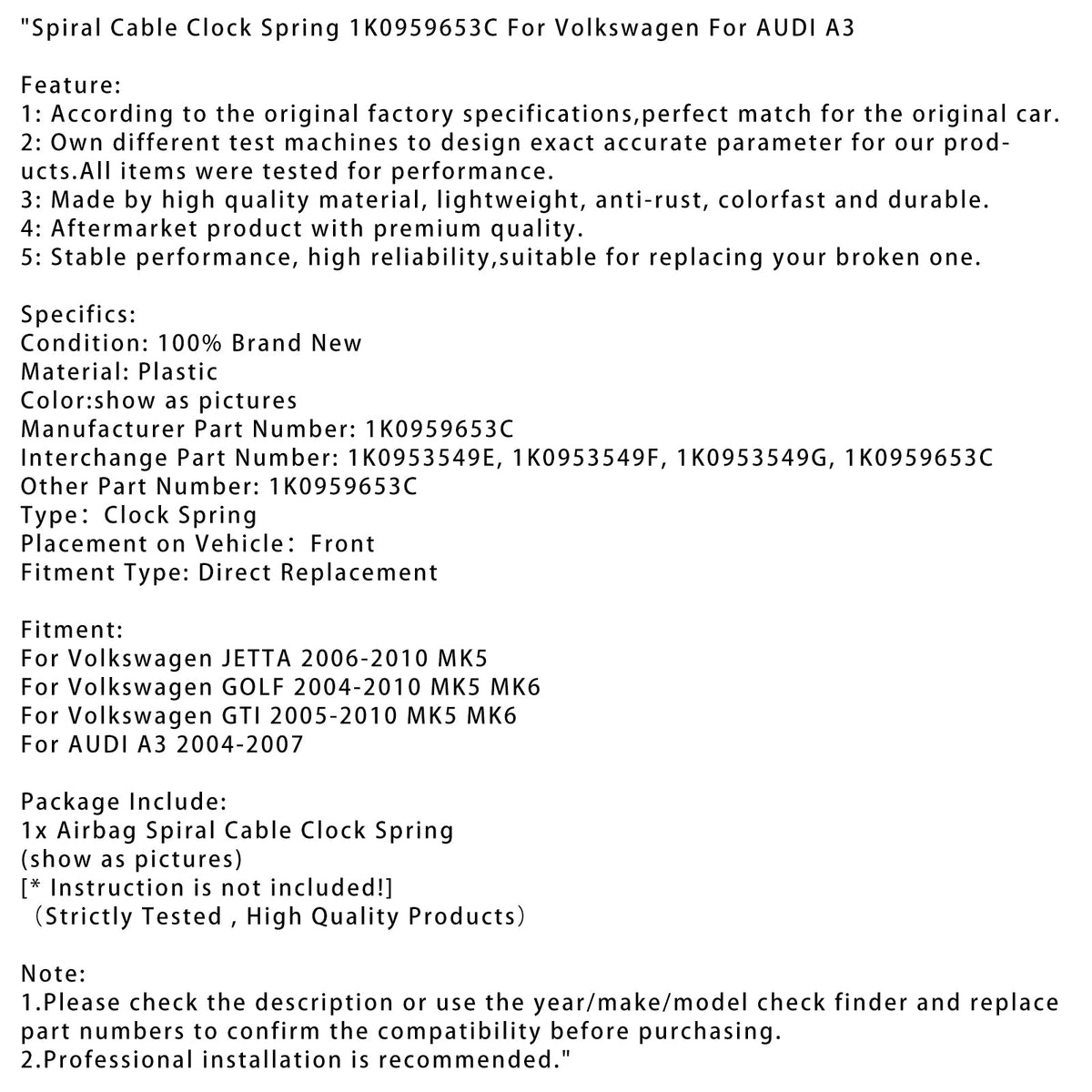 1. Bitte überprüfen Sie vor dem Kauf die Beschreibung oder verwenden Sie den Prüffinder für Jahr/Marke/Modell und ersetzen Sie die Teilenummern, um die Kompatibilität zu bestätigen.