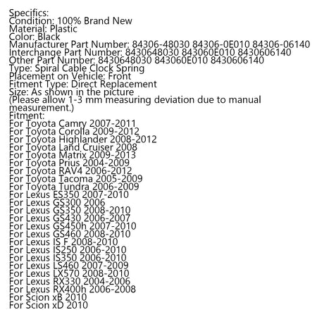 Ressort d'horloge de câble en spirale 84306-06140 pour Toyota Camry Land Cruiser Scion Lexus
