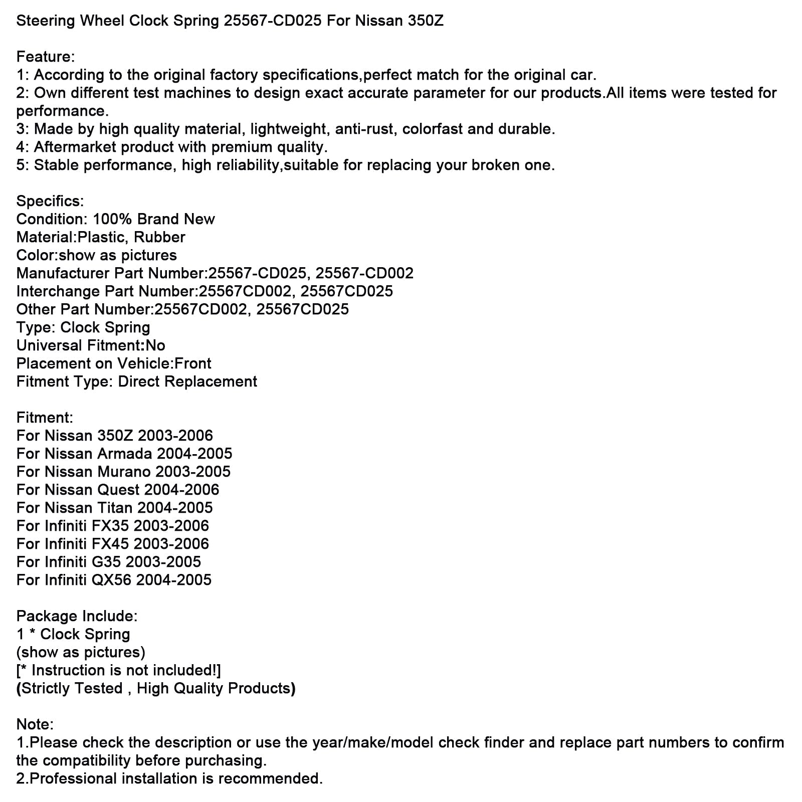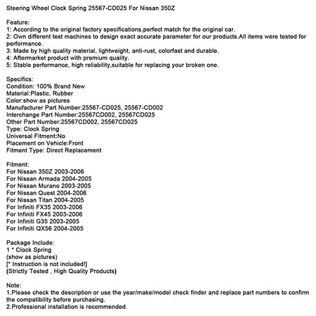 Lenkrad-Uhrfeder 25567-CD025 Für Nissan 350Z
