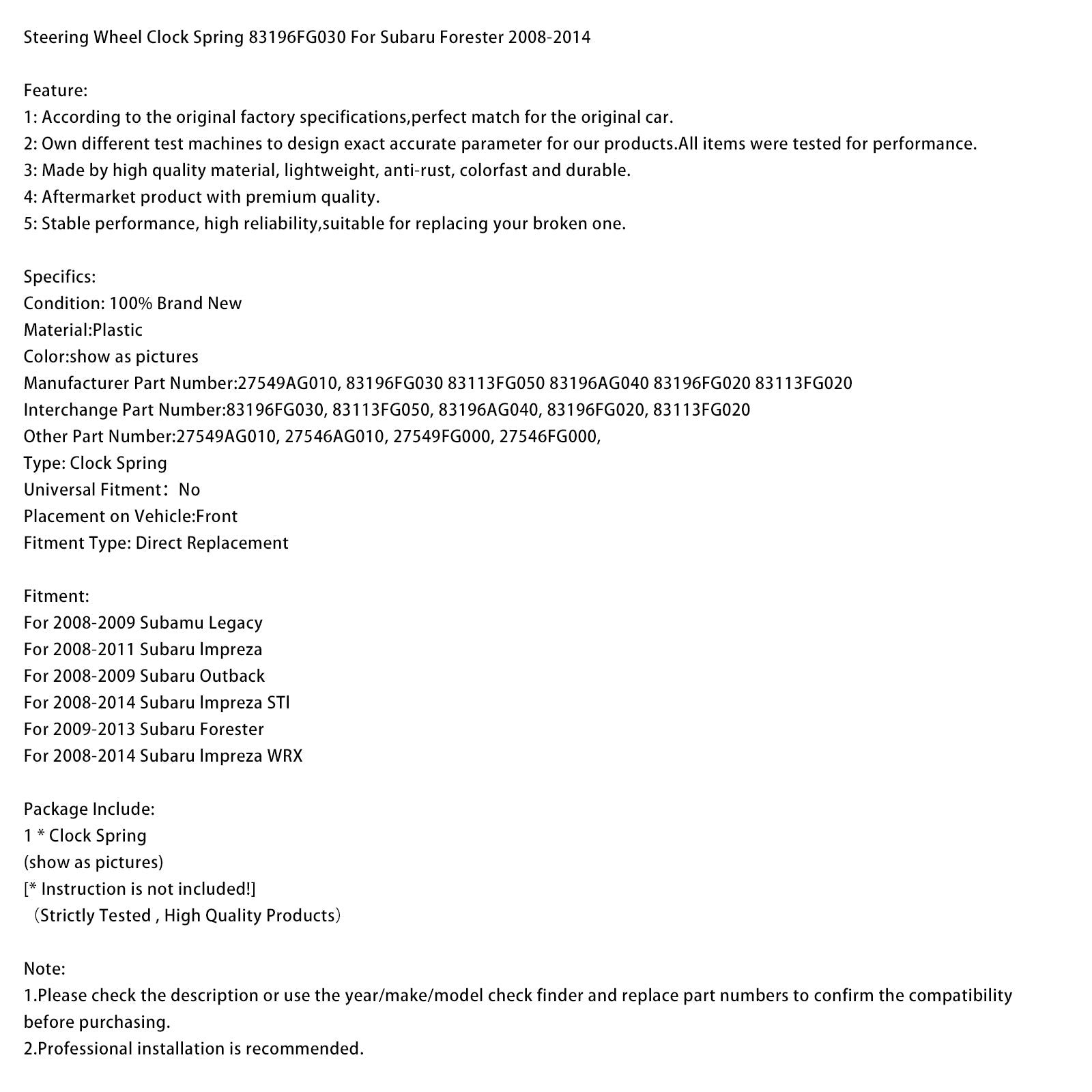 1. Bitte überprüfen Sie vor dem Kauf die Beschreibung oder verwenden Sie die Teilenummern-Prüfung (Jahr/Marke/Modell) und vergleichen Sie die Teilenummern, um die Kompatibilität zu bestätigen.