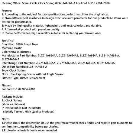 Lenkrad Spiralkabel Wickelfeder 8L3Z-14A664-A Für Ford F-150 2004-2008