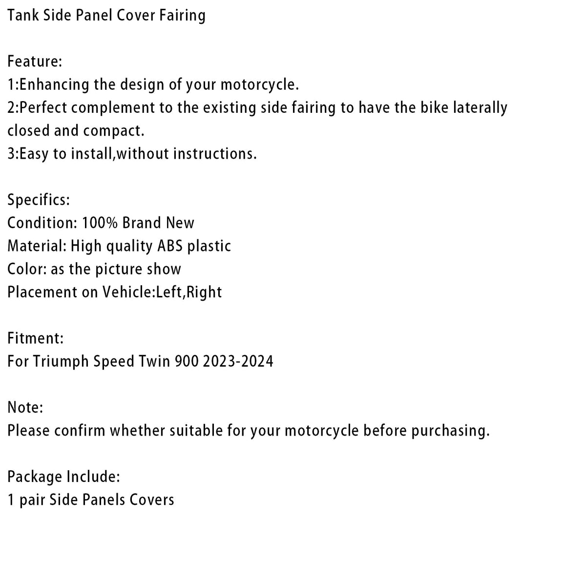 2023-2024 Speed Twin 900 Tank Seitenabdeckung Verkleidung Verkleidung