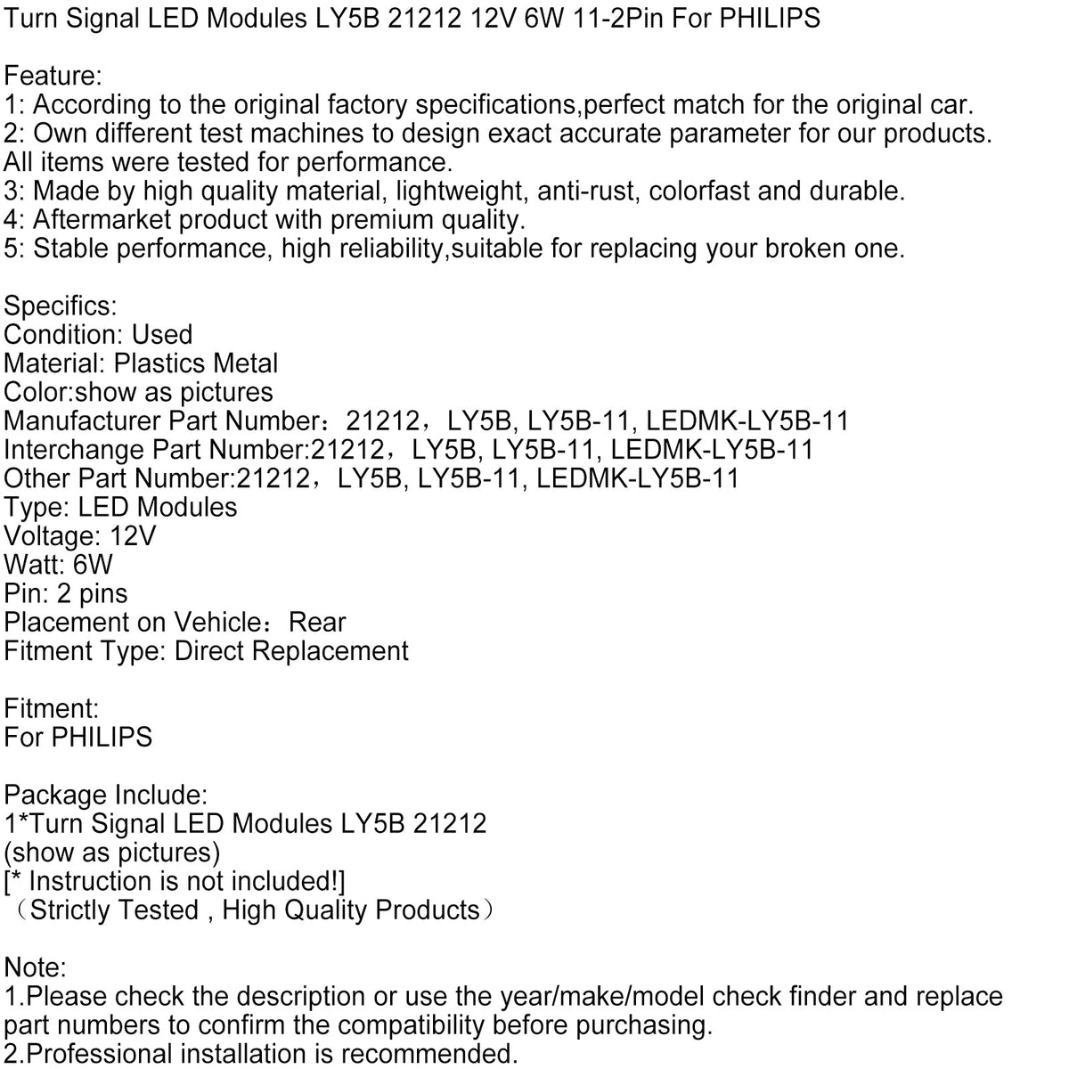 1. Bitte überprüfen Sie vor dem Kauf die Beschreibung oder verwenden Sie den Prüffinder für Jahr/Marke/Modell und ersetzen Sie die Teilenummern, um die Kompatibilität zu bestätigen.