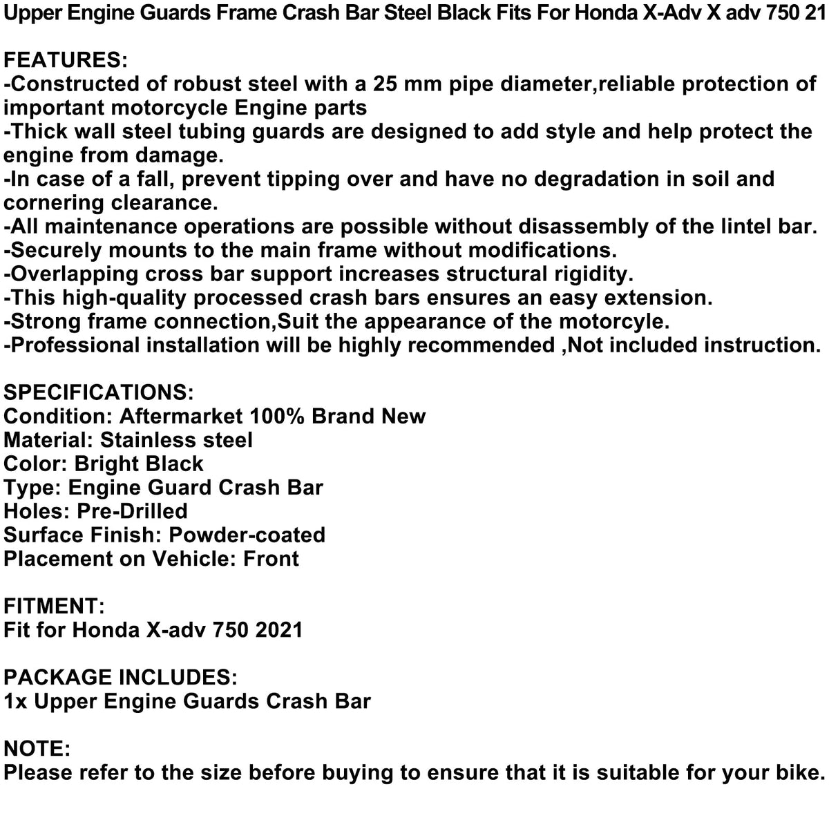 Châssis supérieur de protection moteur crash acier noir pour honda x-adv x adv 750 21