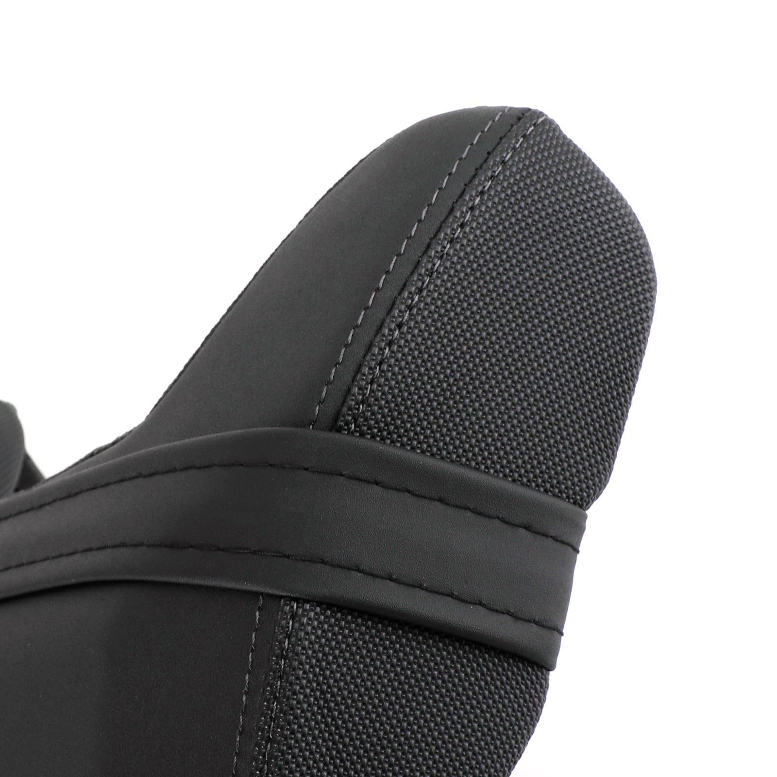Le cuir synthétique souple et la mousse de néoprène offrent une conduite confortable.