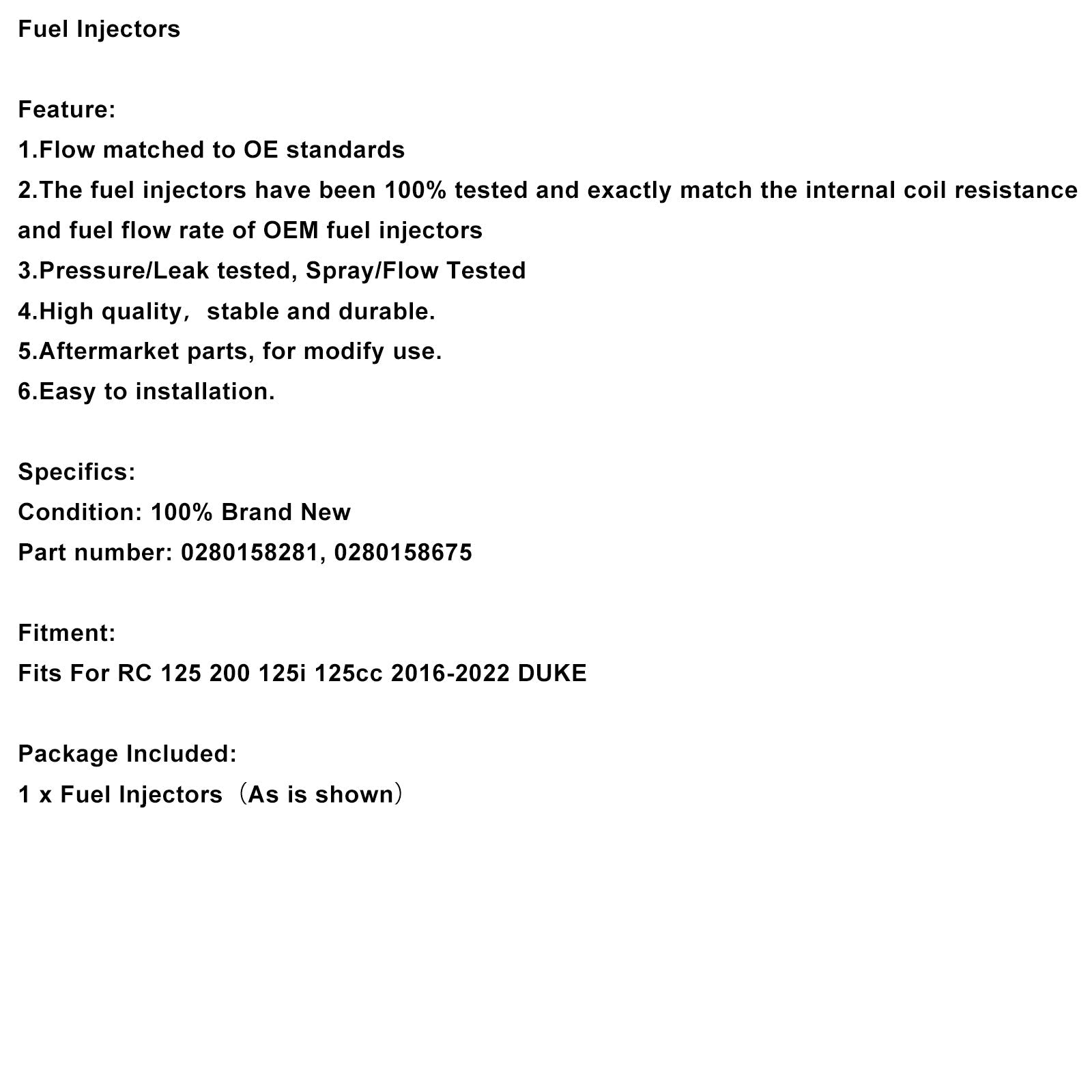 Kraftstoffeinspritzdüsen passend für RC 125 200 125i 125cc 2016-2022 DUKE 0280158281