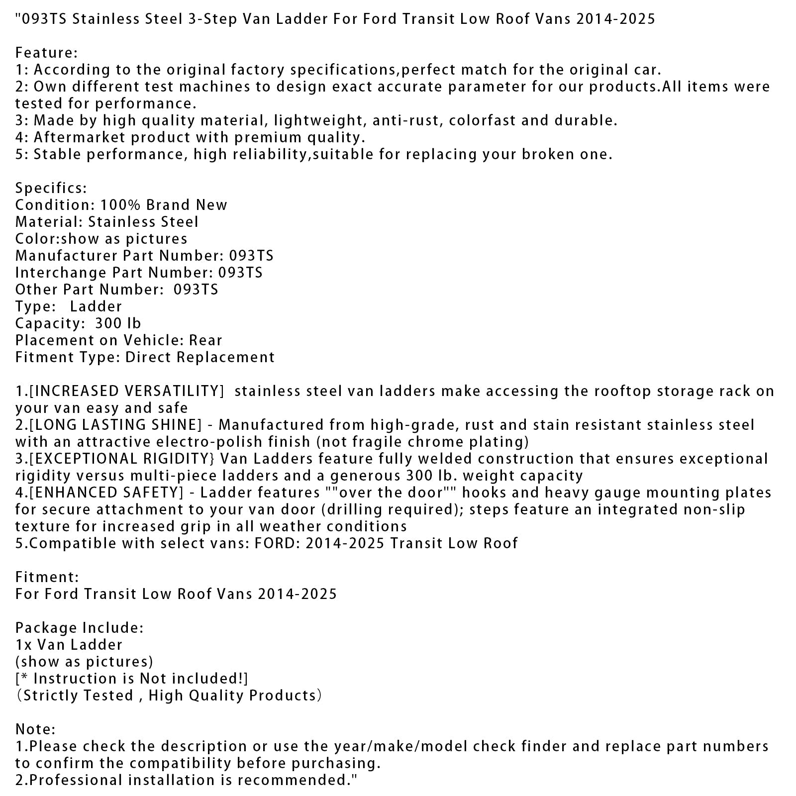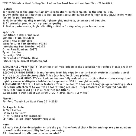 2014–2025 Ford Transit Niederdach-Transporter Edelstahl-3-Stufen-Leiter 093TS