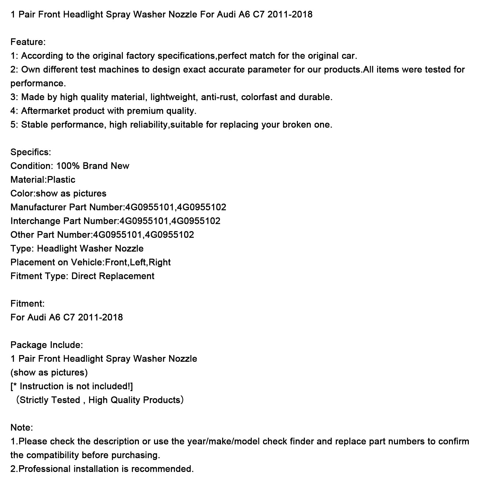 1. Bitte überprüfen Sie vor dem Kauf die Beschreibung oder verwenden Sie die Teilenummern-Prüfung (Jahr/Marke/Modell) und vergleichen Sie die Teilenummern, um die Kompatibilität zu bestätigen.