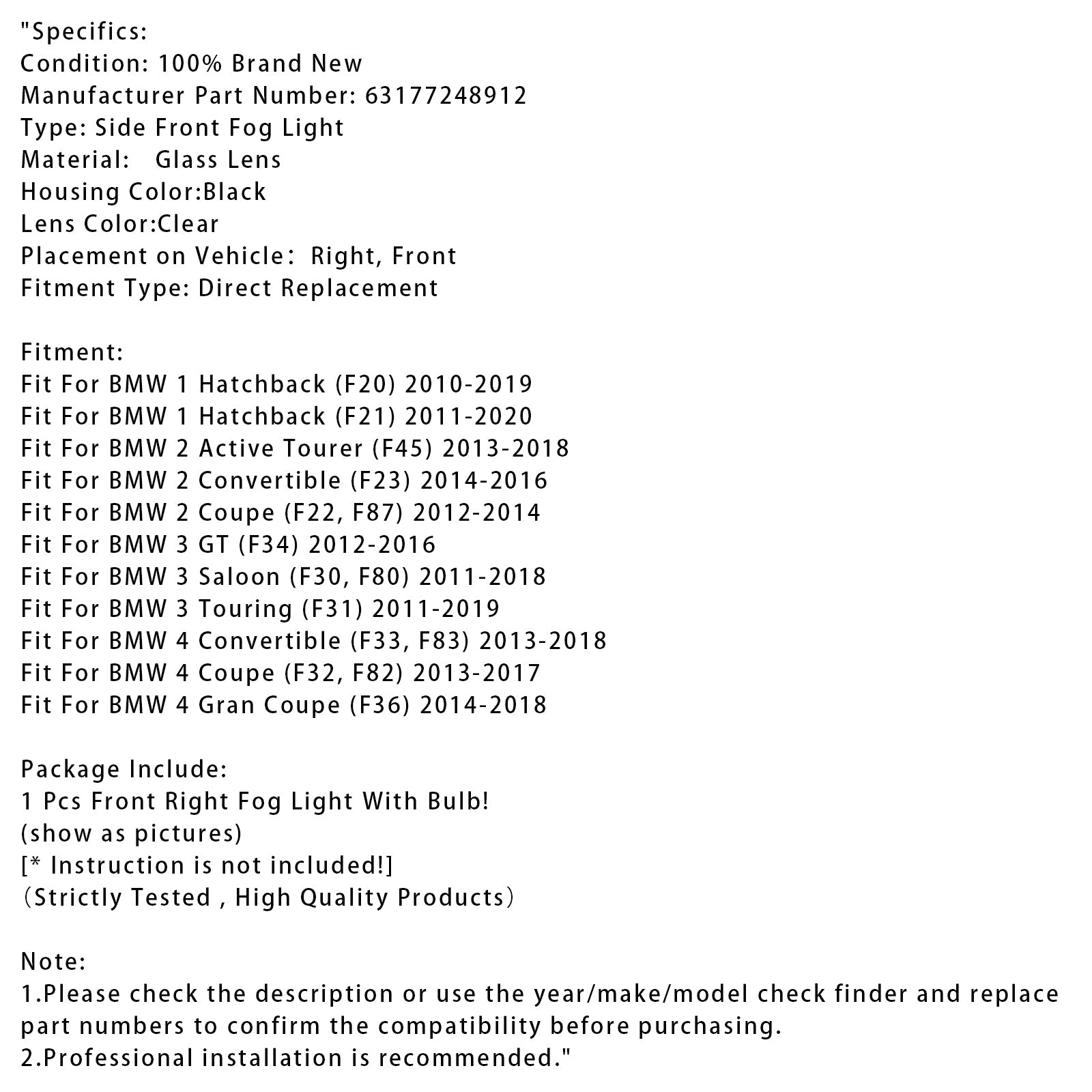 1 Pcs Vorne Rechts Nebel Licht Mit Leuchtmittel Für BMW F20 F21 F30 F31 F80 2011-2019