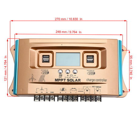 30A-100A Wind Solar Hybrid Charge MPPT Controller Dual USB Charge 12V 24V 36V 48V 60V Auto