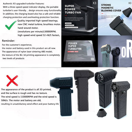 4. Tragbar und kompakt: Mit seiner Mini-Gr??e und dem leichten Design ist es sehr bequem zu tragen. Das kompakte Geh?use des Turboventilators ist leicht zu transportieren und bequem im Freien zu verwenden.