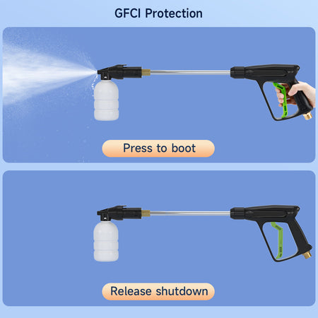 【Total Stop System】 Genie?en Sie den Komfort unseres Total Stop Systems, das die Pumpe automatisch abschaltet, wenn der Ausl?ser losgelassen wird. Diese Funktion erh?ht nicht nur die Sicherheit, sondern verl?ngert auch die Lebensdauer Ihres Hochdruckreinigers.
