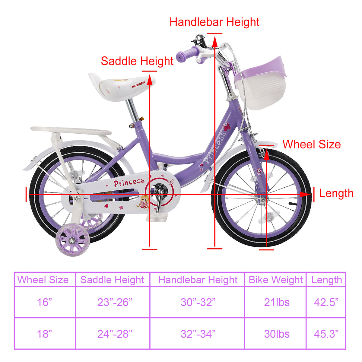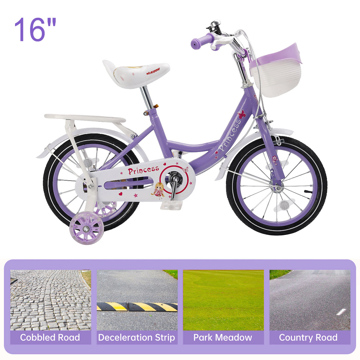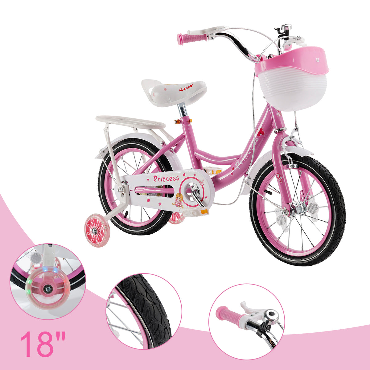 16"/18" Kinderfahrrad für Mädchen mit Stützrädern, Korb und Ständer
