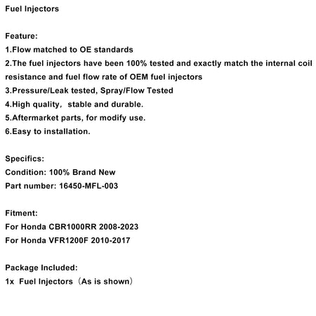 Kraftstoffeinspritzdüsen passend für Honda CBR1000RR 08-23 VFR1200F 2010-2017 16450-MFL-003