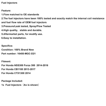 Kraftstoffeinspritzdüsen passend für Honda CB1100 2013-2017 NSS300 Forza 300 16450-MGC-D21