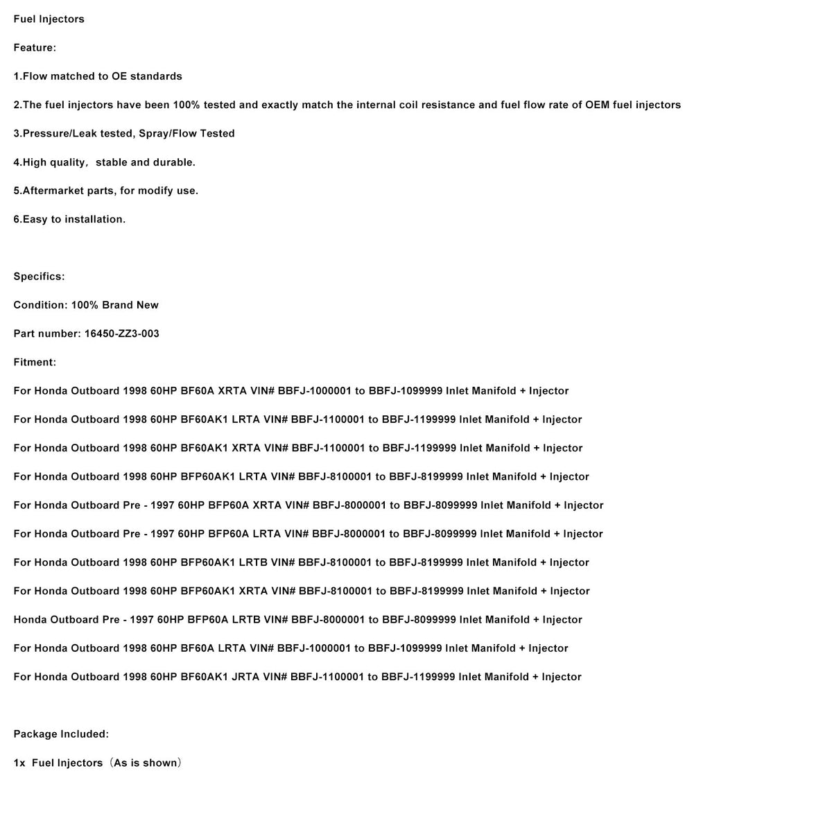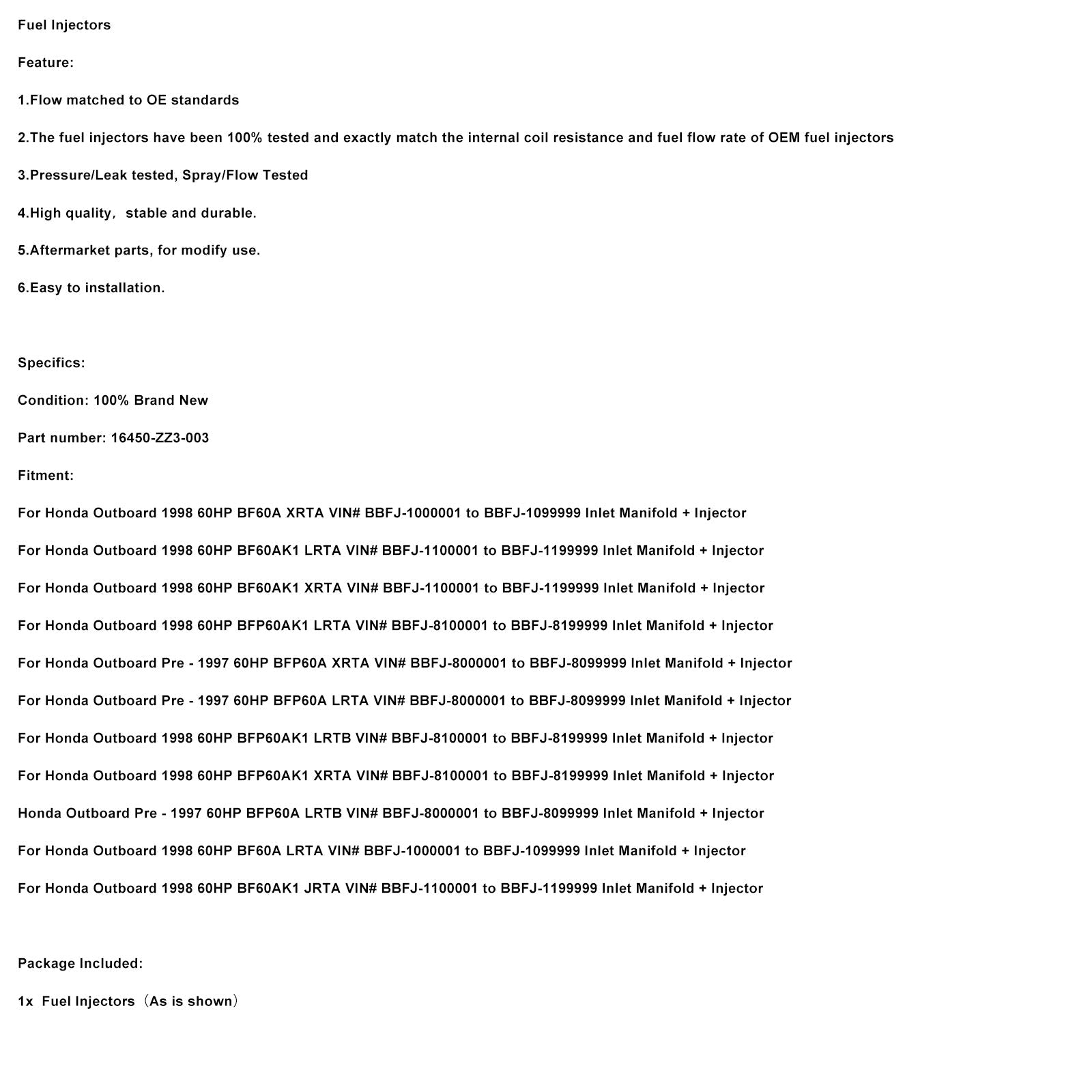 Ansaugkrümmer + Einspritzdüse für Honda Außenbordmotor 1998 60 PS BF60A XRTA Fahrgestellnummer BBFJ-1000001 bis BBFJ-1099999