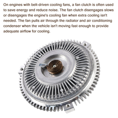 Bei Motoren mit riemengetriebenen Kühlerlüftern wird h?ufig eine Lüfterkupplung verwendet, um Energie zu sparen und L?rm zu reduzieren. Die Lüfterkupplung l?st den Kühlerlüfter des Motors, verlangsamt ihn oder schaltet ihn aus, wenn keine zus?tzliche Kühlung erforderlich ist. Der Lüfter saugt Luft durch den Kühler und den Klimaanlagenkondensator, wenn das Fahrzeug nicht schnell genug f?hrt, um einen ausreichenden Luftstrom zur Kühlung bereitzustellen.