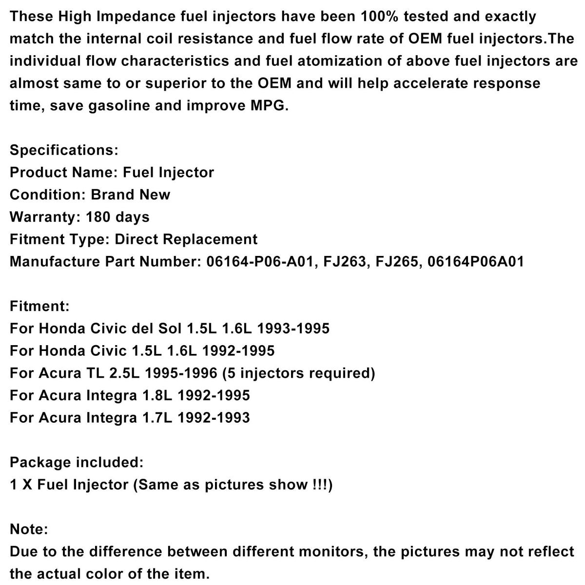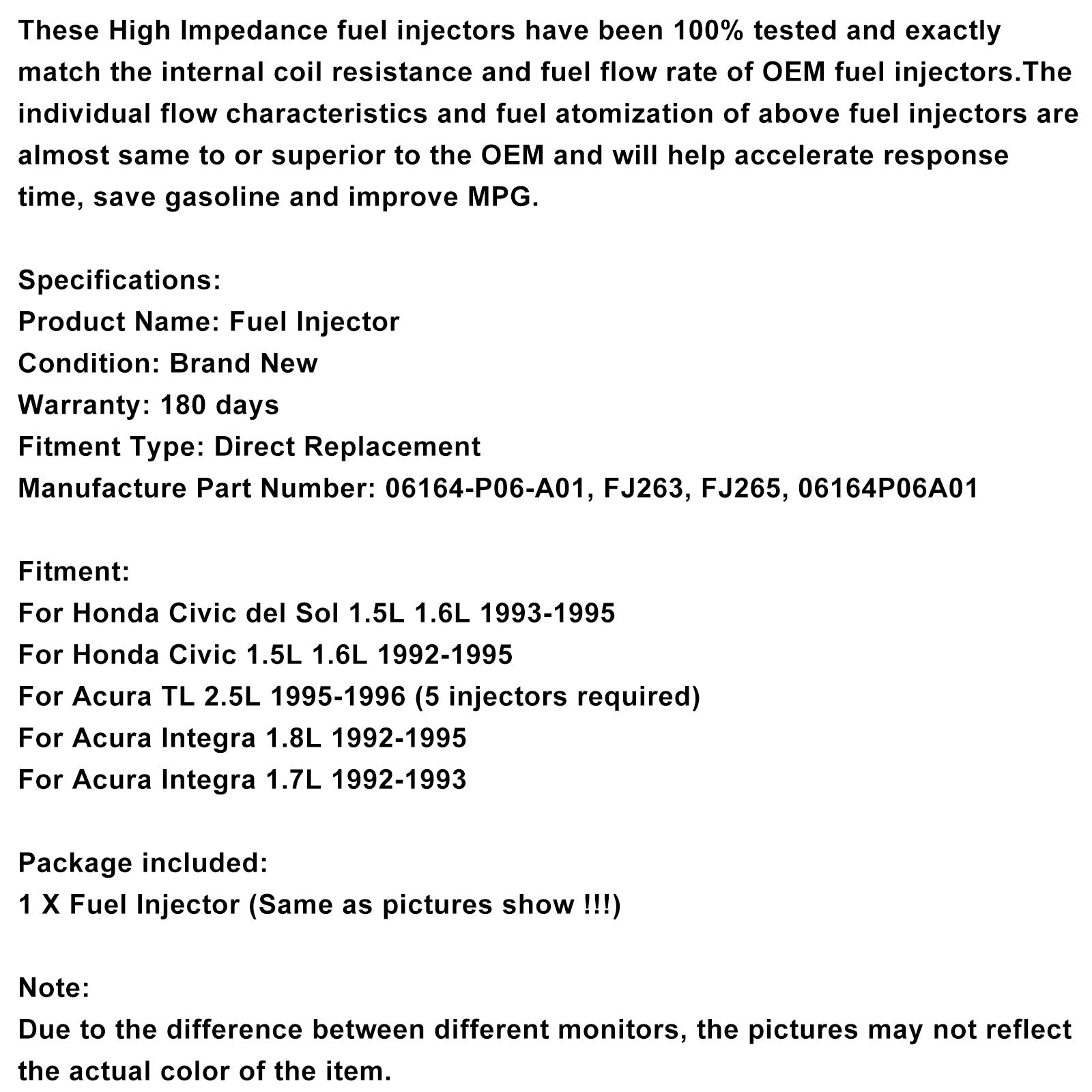 1 STÜCKE Kraftstoffinjektor 06164-P06-A01 Fit Civic Del Sol 1.5L 1.6L Integra 1.7L 1.8L