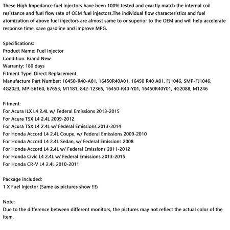 1 STÜCKE Kraftstoffinjektor 16450-R40-A01 Fit Honda Accord Civic CRV 2.4L 2008-2015