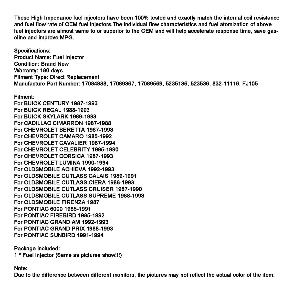 1 STüCKE Kraftstoff Injektor 5235136 Fit GM 2,8 L 3,1 L 3,3 L V6 1985-1994 17089569