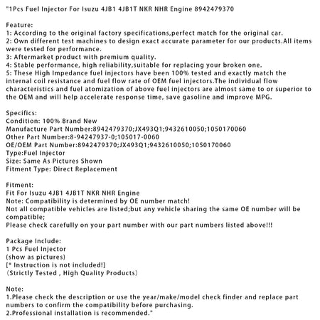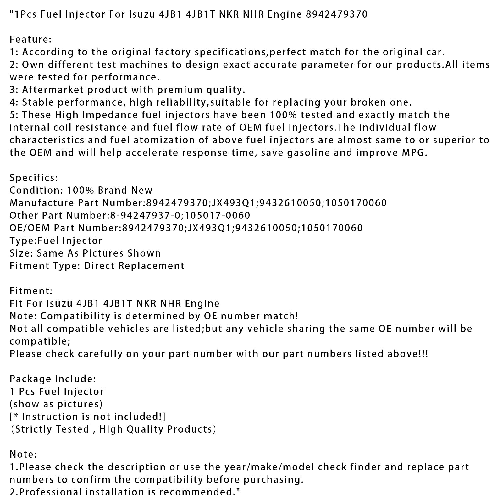 1 Stück Kraftstoffeinspritzdüse für Isuzu 4JB1 4JB1T NKR NHR Motor 8942479370