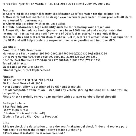 1 Stück Einspritzdüse für Mazda 2 1.3L 1.5L 2011-2014 Fiesta 2009 297500-0460