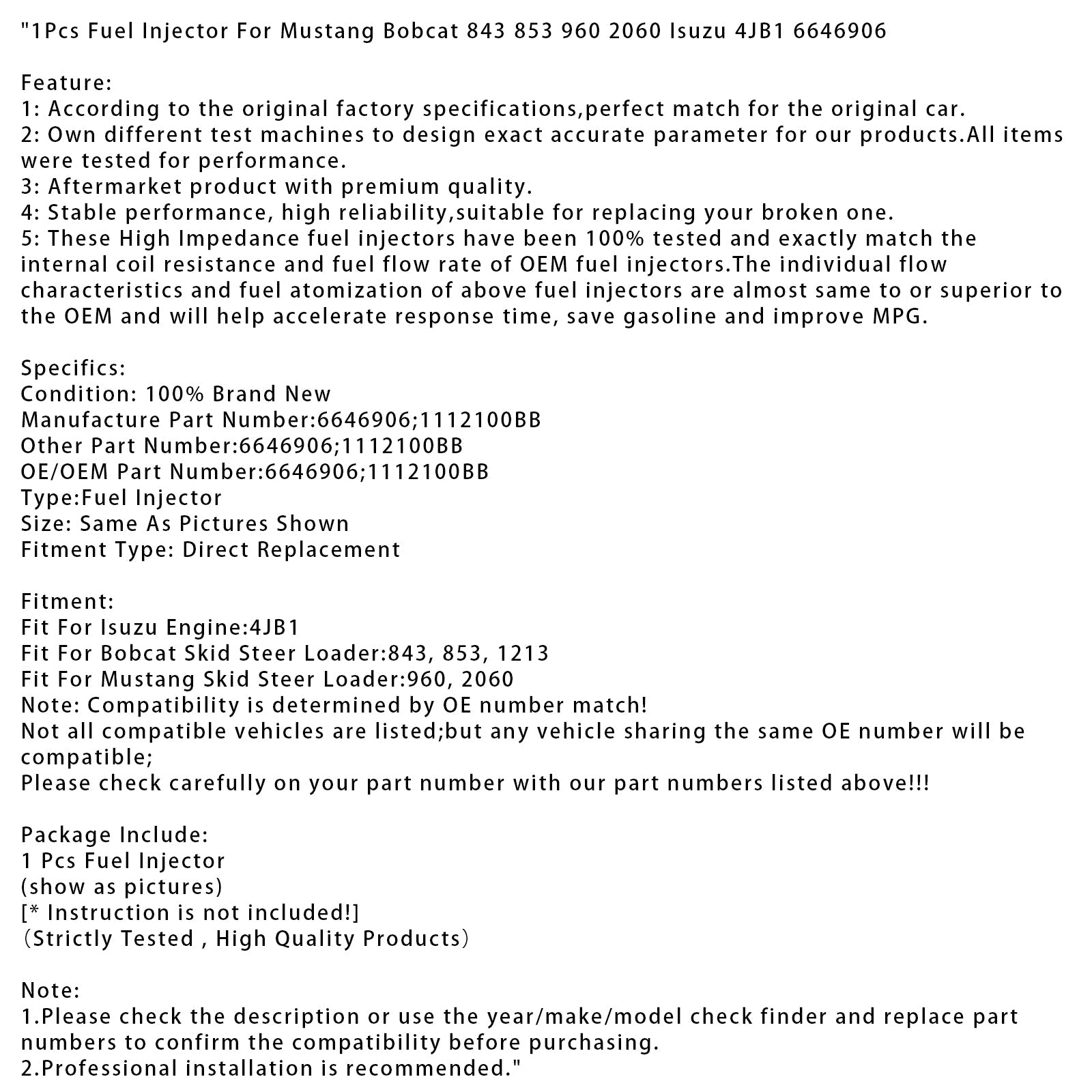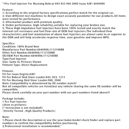 1 Stück Kraftstoffeinspritzdüse für Mustang Bobcat 843 853 960 2060 Isuzu 4JB1 6646906