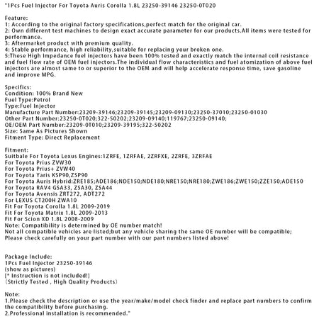 1 Stück Kraftstoffeinspritzdüse für Toyota Auris Corolla 1.8L 23250-39146 23250-0T020