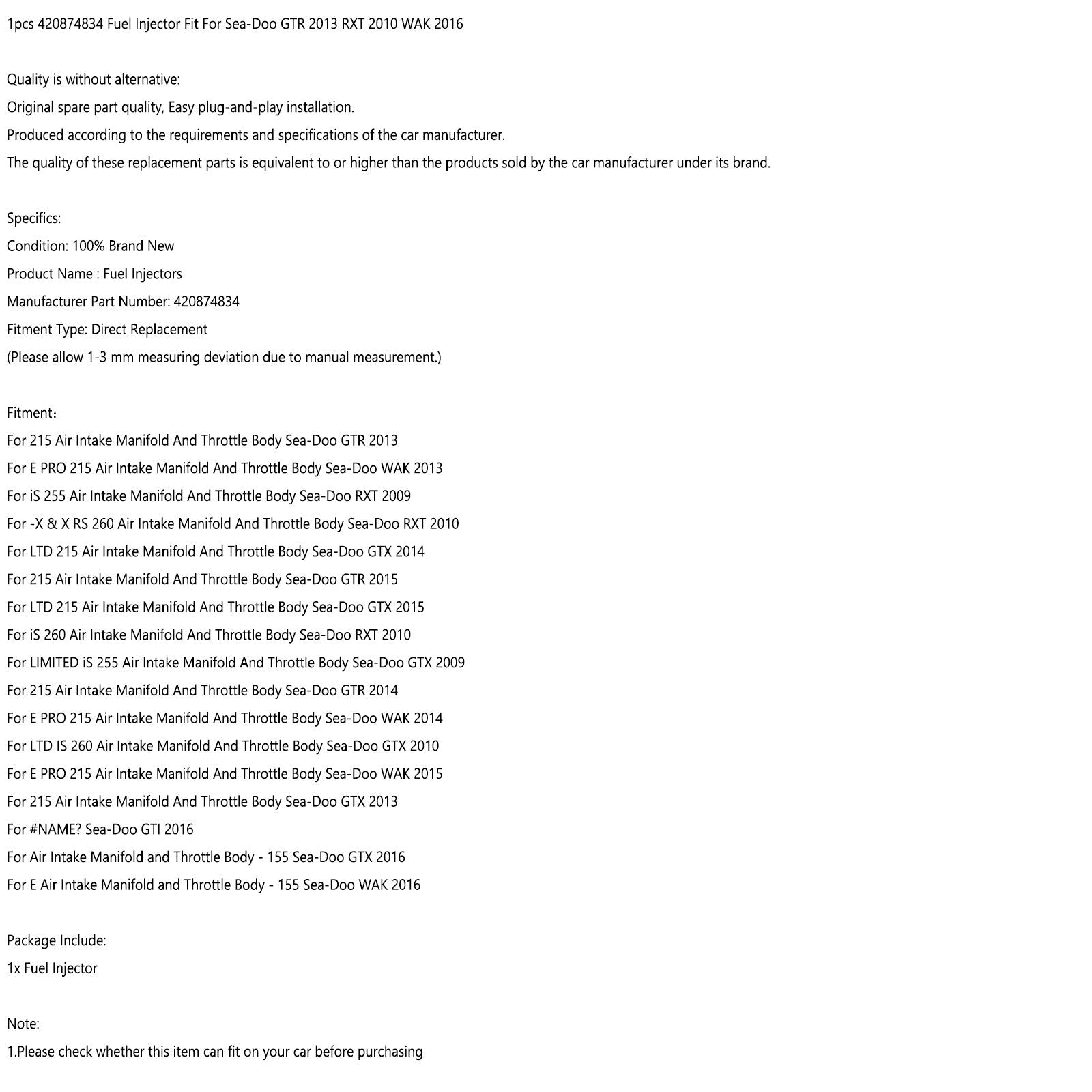 Fuel Injectors 420874834 Passform für Sea-Doo GTR 2013 RXT 2010 WAK 2016