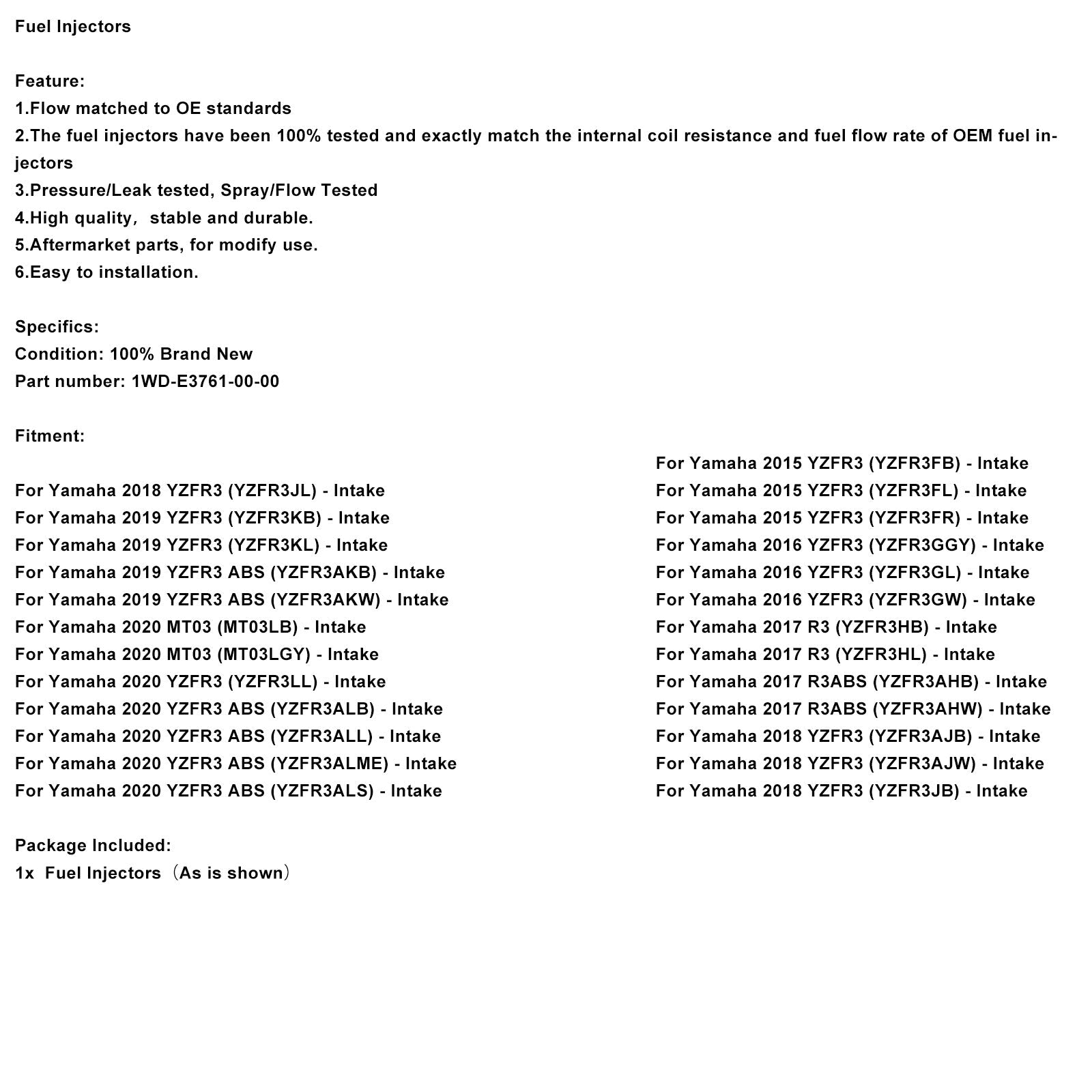 1WD-E3761-00-00 Einspritzdüsen für Yamaha YZF-R3 2015-2022