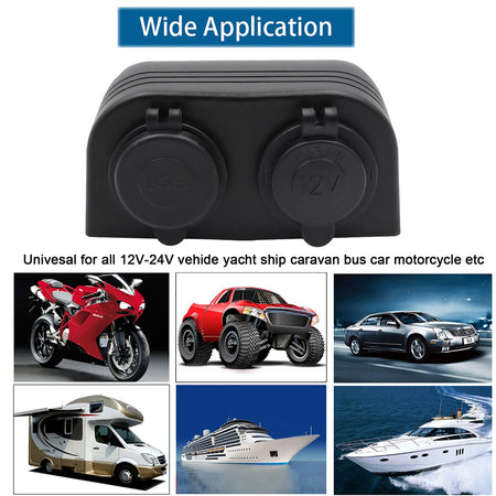 Hier ist eine doppelte 4,2A -USB -Steckdose und eine 12 -Volt -Steckdose, die alle auf einer Oberfl?chenmontage montiert sind. Es ist für Auto, Karawane, Boot, 4WD usw. geeignet.