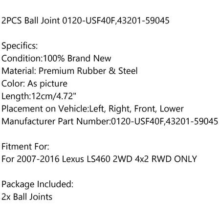 2 x vorderes unteres Achsschenkel-Spindel-Kugelgelenk für 07–16 Lexus LS460 43201–59045