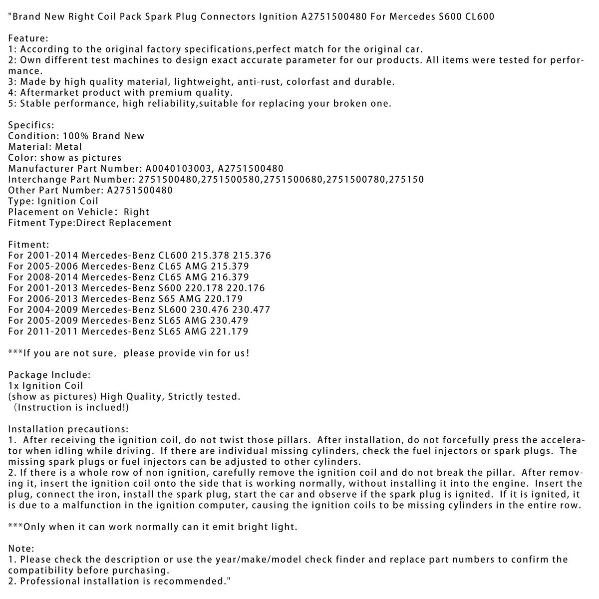 Marke Neue Rechts Spule Pack Zündkerze Anschlüsse Zündung A2751500480 Für Mercedes S600 CL600