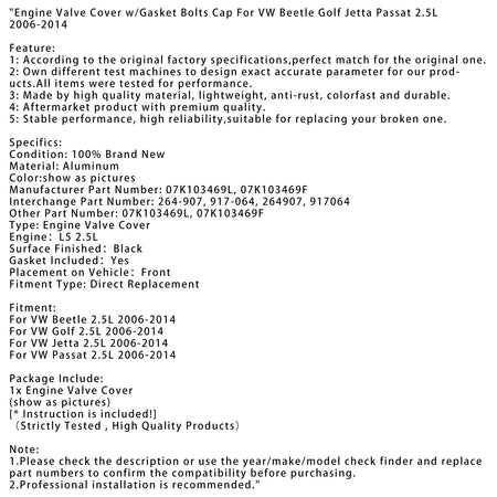 Motorventildeckel mit Dichtungsschraubenkappe für VW Käfer Golf Jetta Passat 2.5L 2006-2014