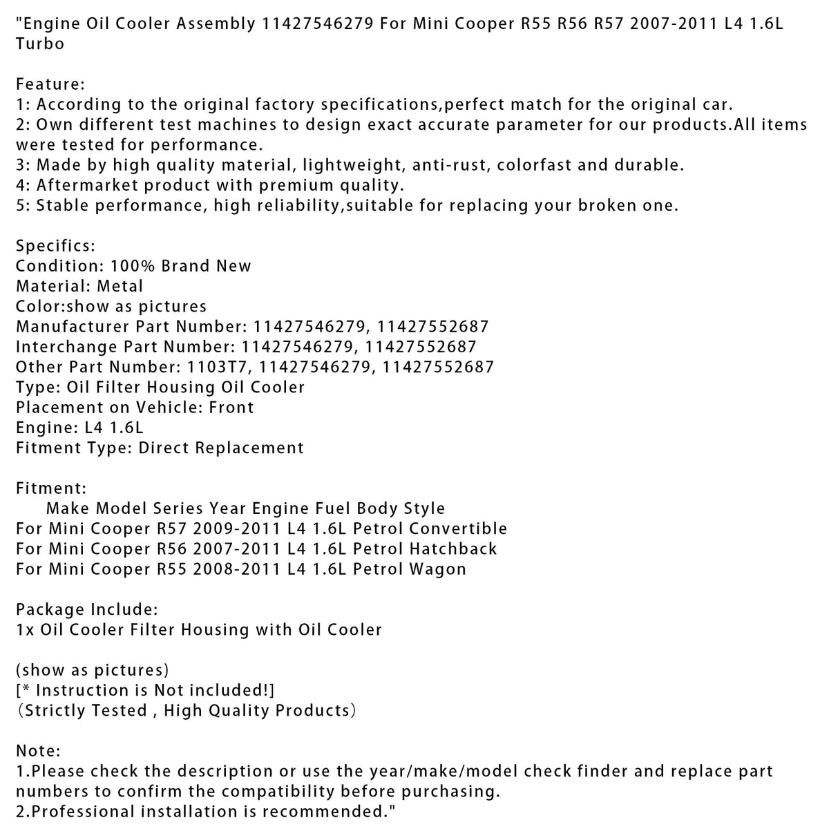 2007–2011 Mini Cooper R56 L4 1.6L Benzin Fließheck Motorölkühler Ölfilter Montage 11427546279 11427552687