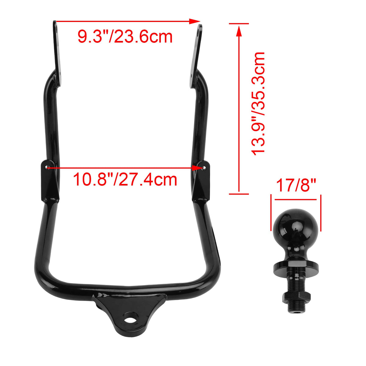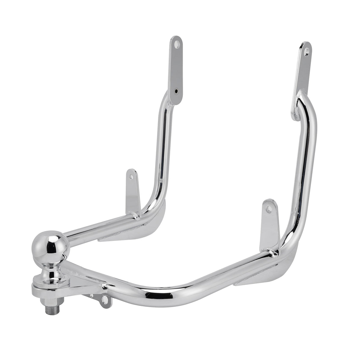 Die Anhängerkupplung wird an den inneren Rahmen-/Kotflügelstreben befestigt, und die unteren Halterungen werden an den Satteltaschenhalterungen verankert.