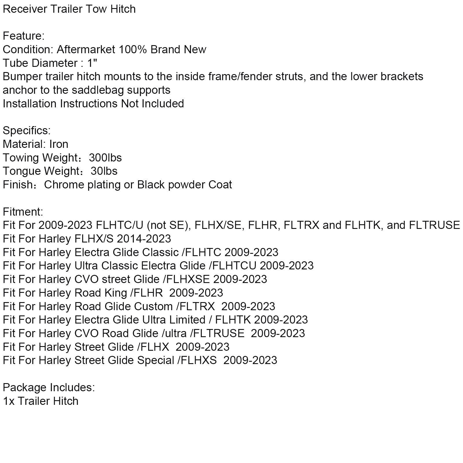 Anhängerkupplung passend für Touring Electra Street Glide FLHX 2009-2023
