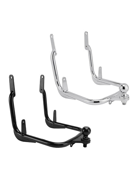 Die Anhängerkupplung wird an den inneren Rahmen-/Kotflügelstreben befestigt, und die unteren Halterungen werden an den Satteltaschenhalterungen verankert.