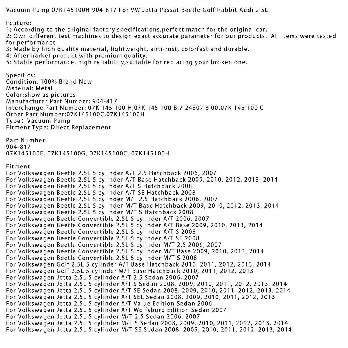 Vakuumpumpe 07K145100H 904-817 Für VW Jetta Passat Beetle Golf Kaninchen Audi 2.5L