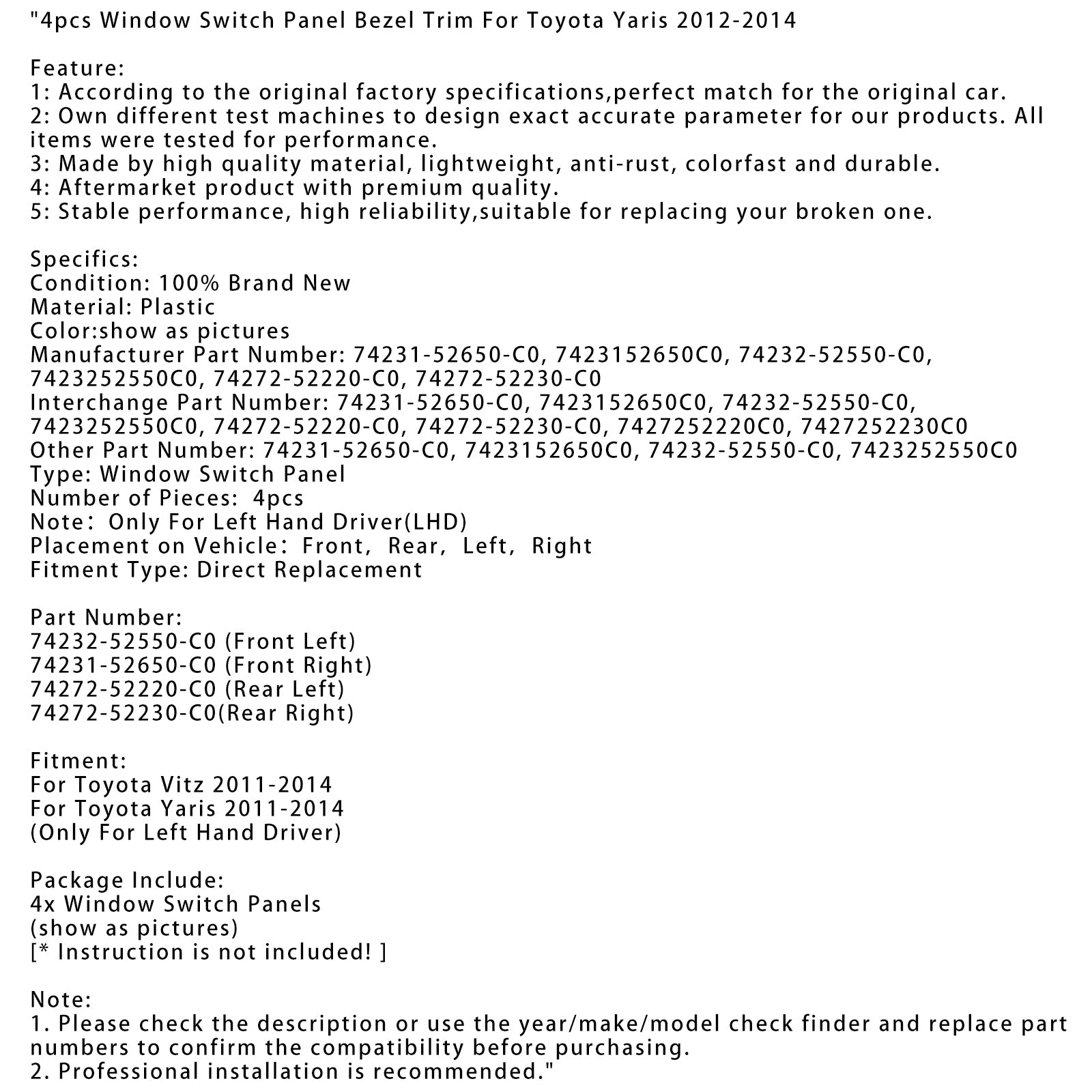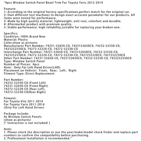 2011-2014 Toyota Yaris 4 stücke Fenster Schalter Panel Lünette Trim 74232-52550-C0 74231-52650-C0