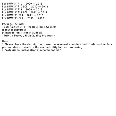 Ölkühler Ölfiltergehäuse & Dichtungen 11428512283 Für BMW X3 F25 2009-2017