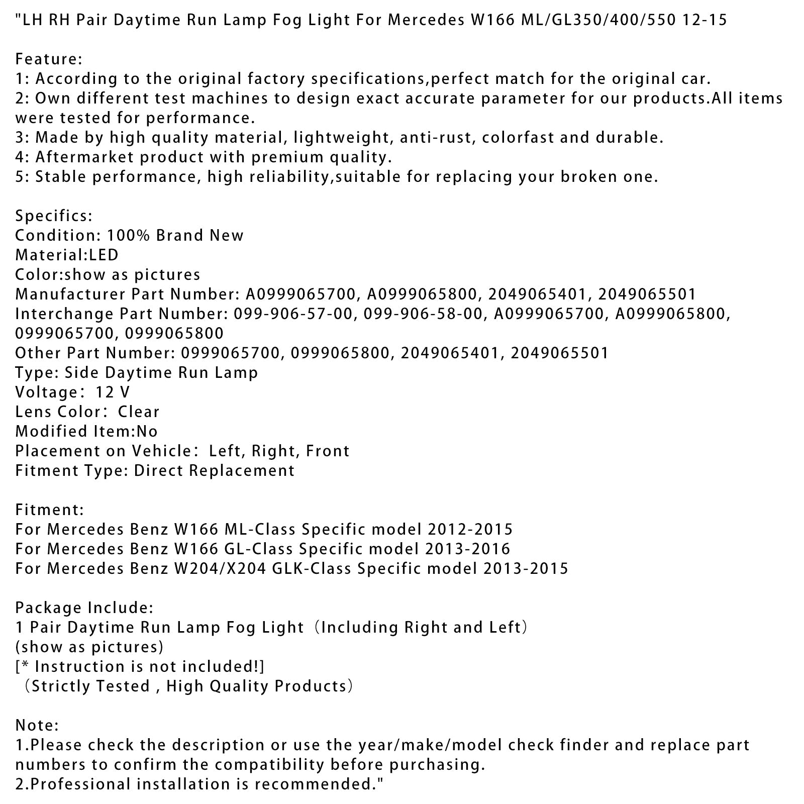 LH RH Paar Tagfahrlicht Lampe Nebelscheinwerfer Für Mercedes W166 ML/GL350/400/550 12-15