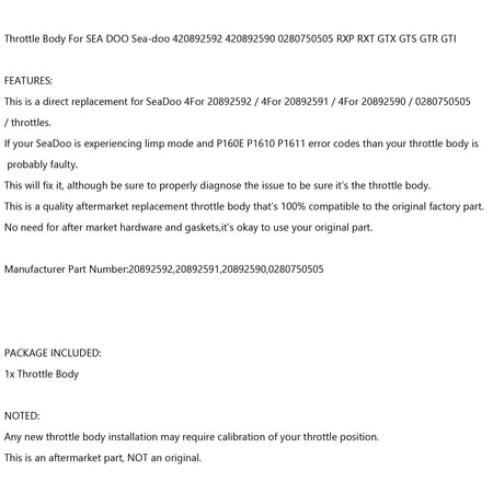 Drosselklappengeh?use Für SEA DOO Meer-doo 420892592 420892590 0280750505 RXP RXT GTX GTS GTR GTI