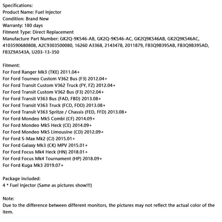 2013.08+ Ford Transit V363 Spritze / Fahrgestell (FED, FFD) 4PCS Kraftstoffeinspritzdüse GK2Q-9K546-AC 4103590680808 GK2Q9K546AB